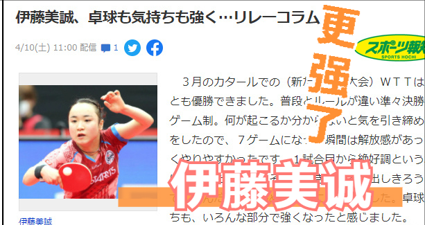 å ±ã'ãããã¦ç®æãéæã¨ã¯ å"çæ¥æ¬ä»£è¡¨ Number Web ãã³ãã¼ from number.ismcdn.jp Jul 03, 2021 · 伊藤美誠の一覧。 このwebサイトに掲載されている文章・映像・音声写真等の著作権はテレビ東京・bsテレビ東京 およびその他の権利者に帰属して. Jan 27, 2021 · 卓球、ハンガリー・オープン、女子シングルス決勝。サーブを打つ伊藤美誠(2020年2月23日撮影)。(c)attila kisbenedek / afp Jun 24, 2021 · 伊藤美誠. Mar 10, 2021 · 卓球世界ランキング 卓球女子世界ランキング(2021年第10週) wtt優勝の伊藤美誠、自己最高タイの2位返り咲き 2021.03.10 文: ラリーズ編集部 国際卓球連盟(ittf)は9日、2021年第10週の世界ランキングを発表した。 Dec 26, 2019 · 卓球×sns 早田ひなと伊藤美誠の"みまひな"ツーショットに「可愛いすぎる」の声 2019.12.26 文: ラリーズ編集部 25日、 早田ひな (日本生命)が自身のsnsを更新。 Aug 11, 2016 · リオ五輪競泳男子日本代表の瀬戸大也(22)が11日、自身のツイッターで、自身と同じく、韓国の女性グループ「少女時代」ユナのファンとして. Mima ito vs ishikawa kasumi | 2021 all japan championships (final) 伊藤 美誠 vs 石川 佳純 | 2021年全日本卓球選手権大会#伊藤 美誠 #石川 佳純 #卓球credit:
