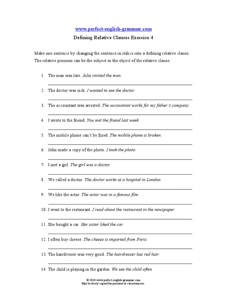 Relative Clauses Exercises - Relative Clauses: online and pdf exercise _ The following exercises include use of this grammar structure